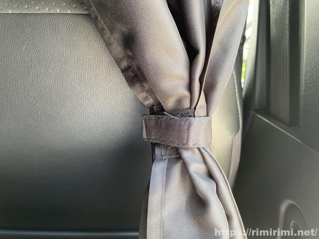 カーテンの収納についてですが、当初はキャンプや車中泊の時以外は取り外して別の場所にしまっておこうと考えていましたが、つけてみると意外と邪魔でもないし気にならないので、我が家では普段からつけっぱなしにしています。