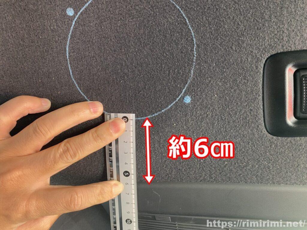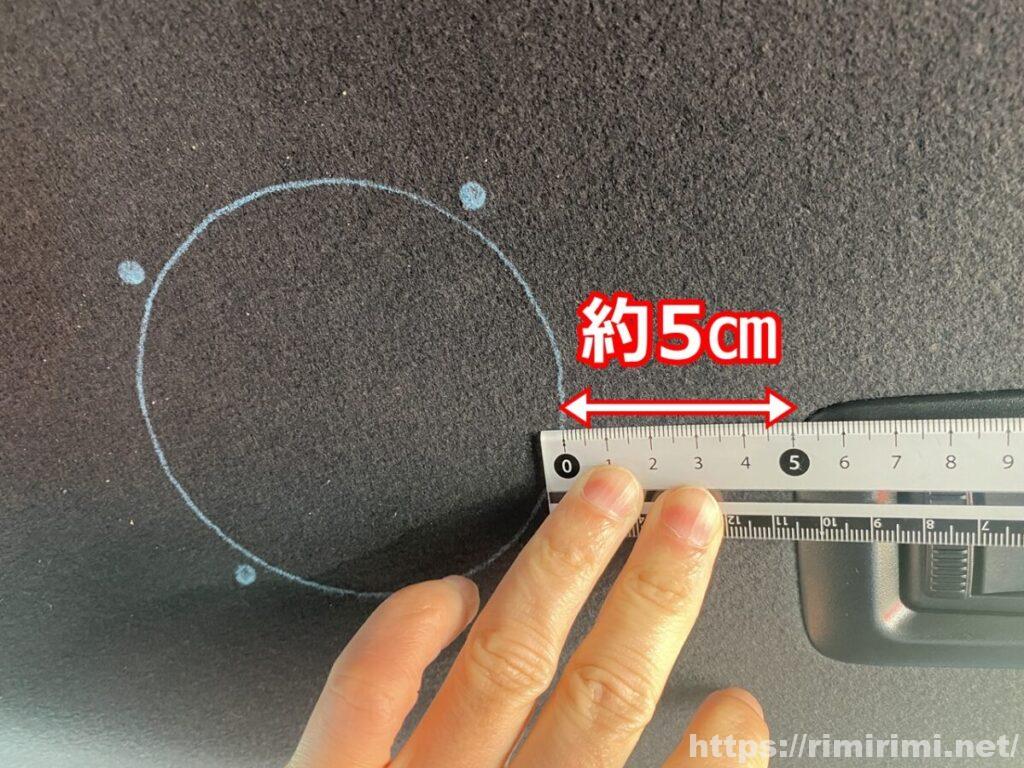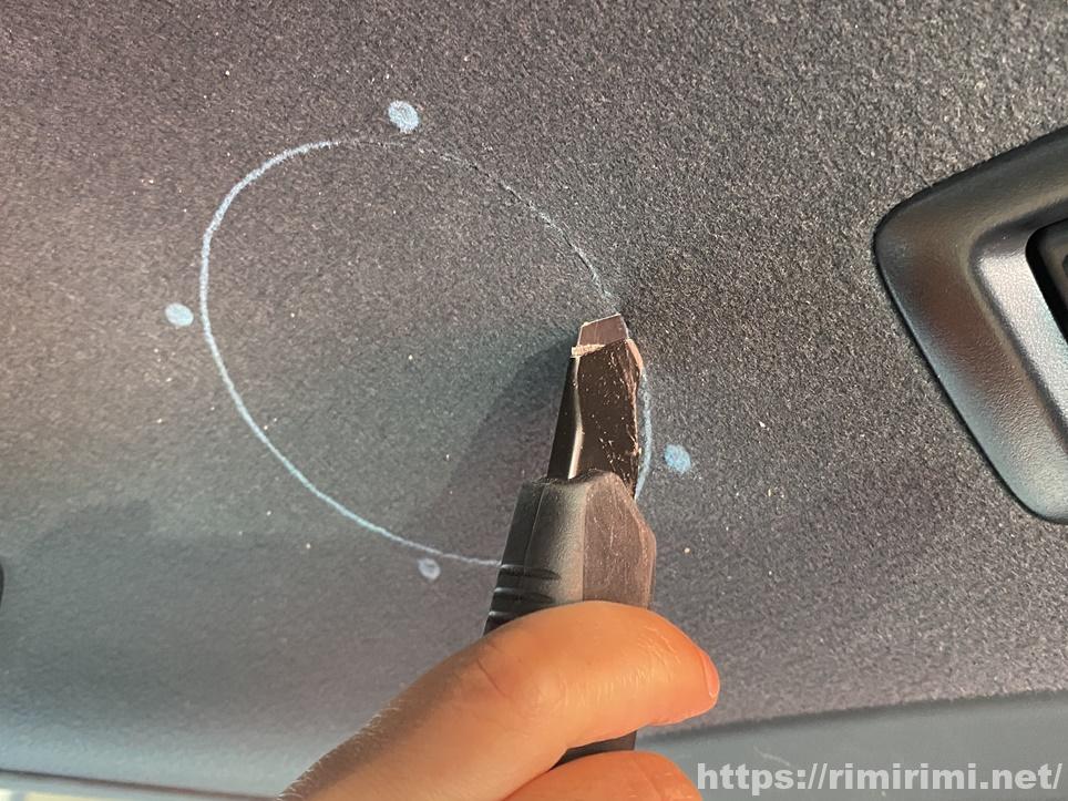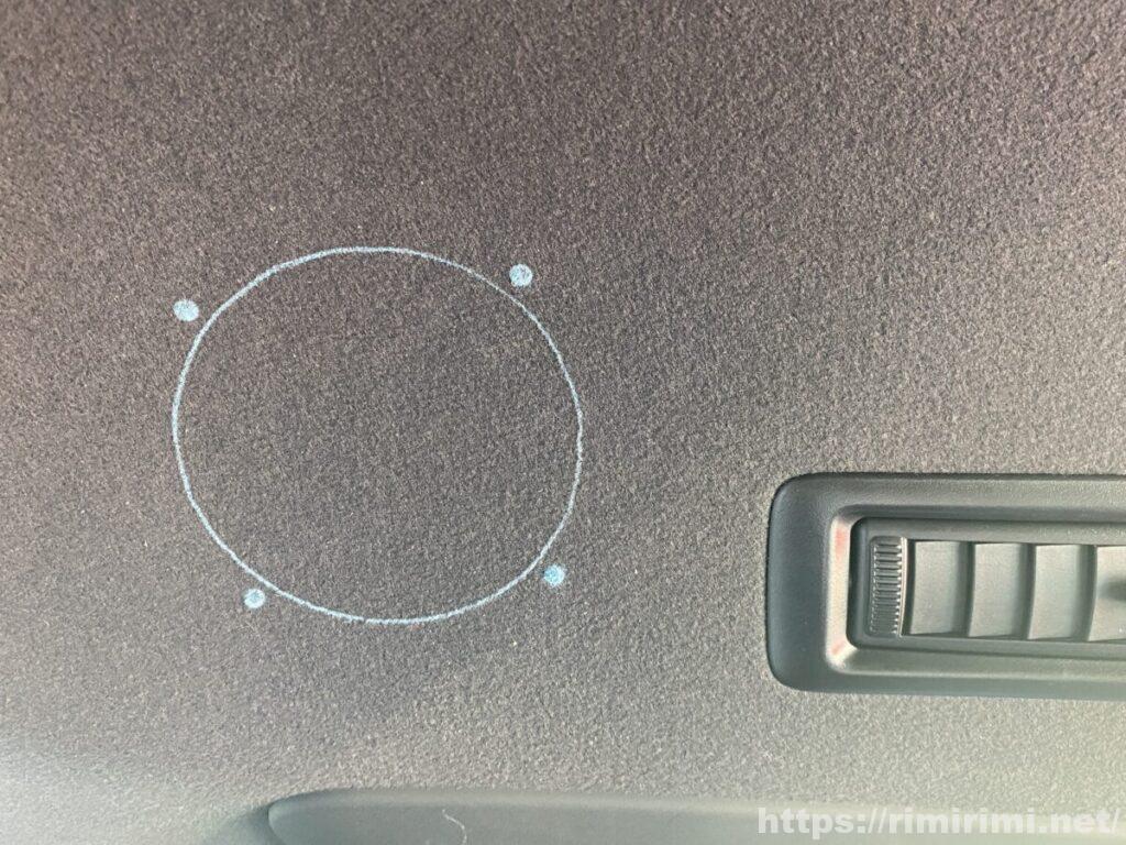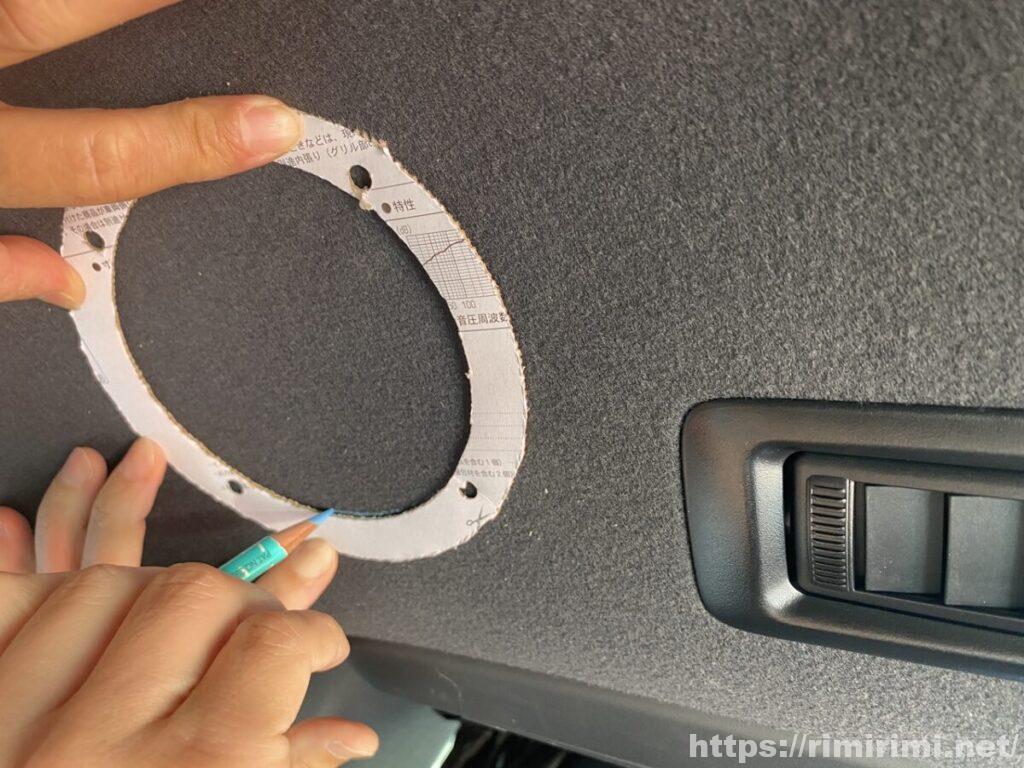 - スピーカーの取り付け位置に型紙をあてて穴を開けます。