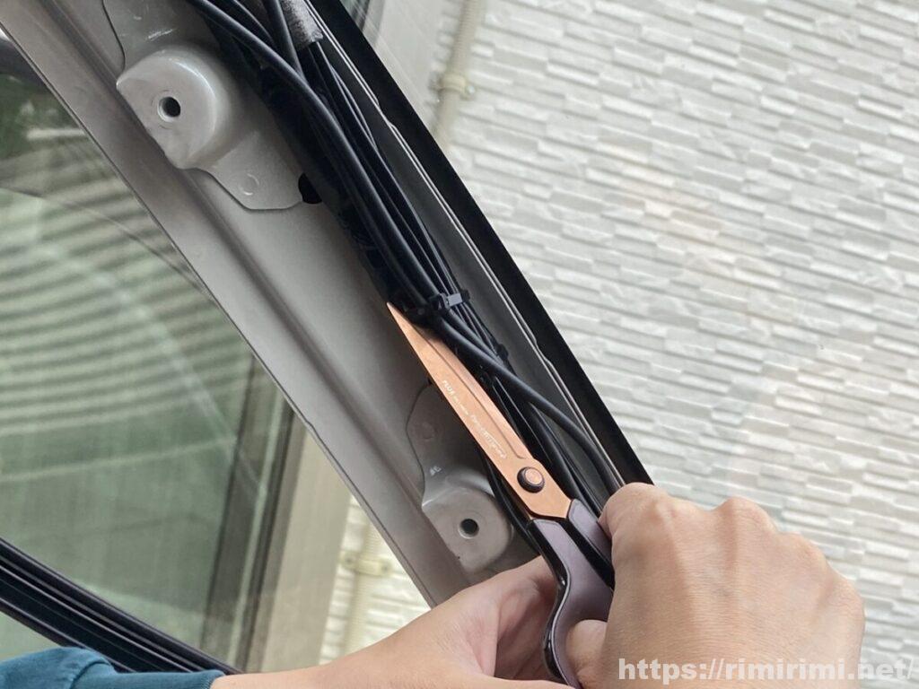 - Aピラーの中にあるコードの束の中から、スピーカーコードを探しておきます。