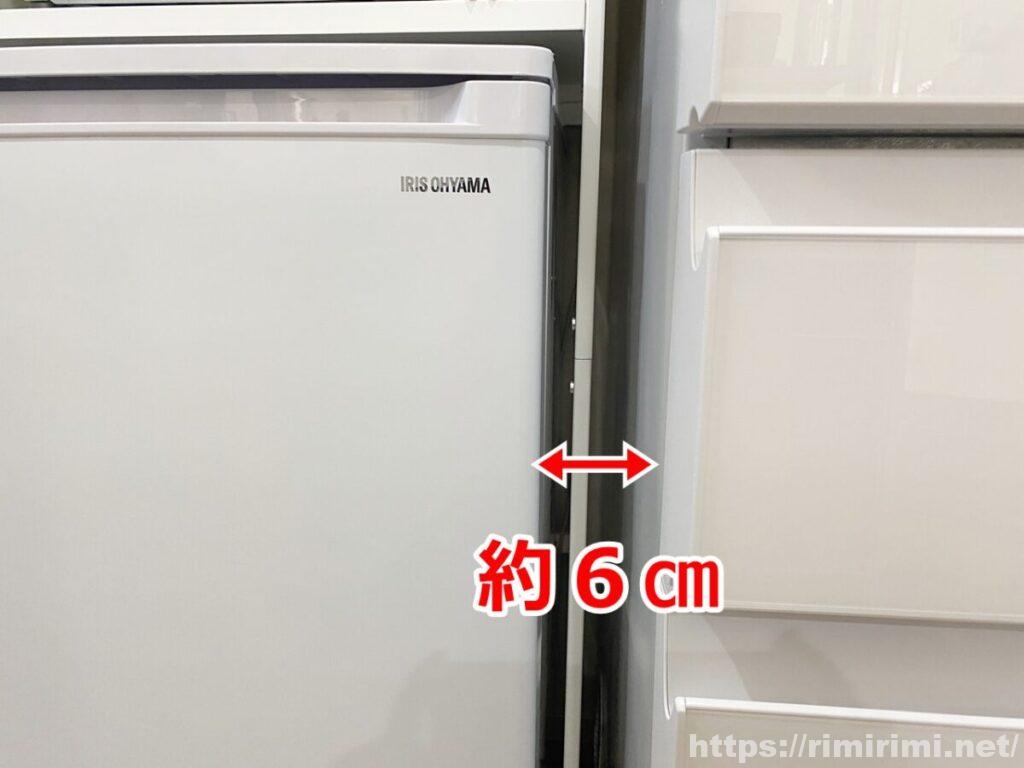 そしてその下にすっぽりと入っているのがアイリスオーヤマの冷凍庫「IUSD-6B」です。