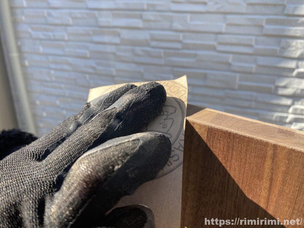 我が家は、自宅にあった紙やすりを使用して、角の少しゲジゲジしていた部分をなめらかにしました。