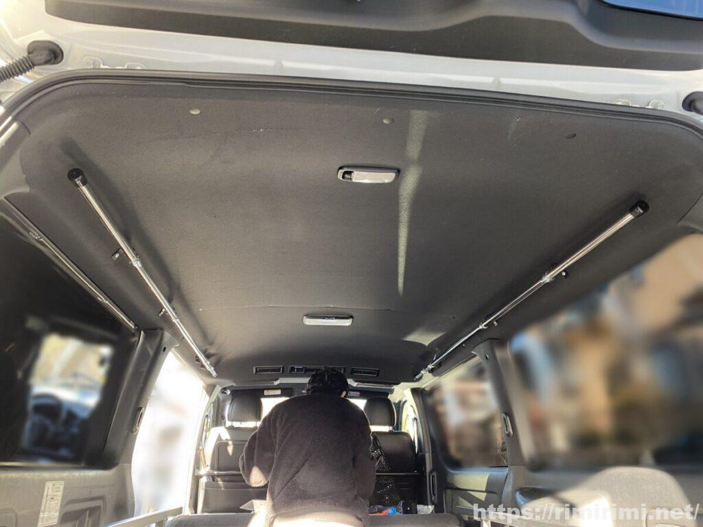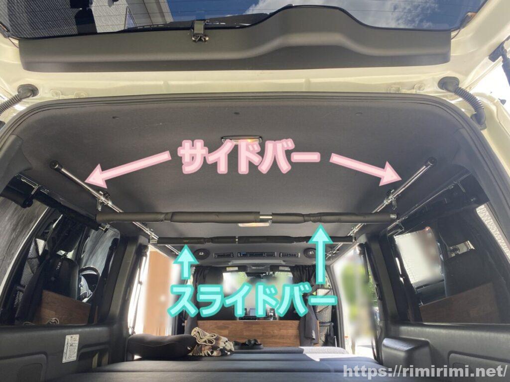 我が家のハイエースは、天井部分にサイドバーとスライドバーを取り付けています。