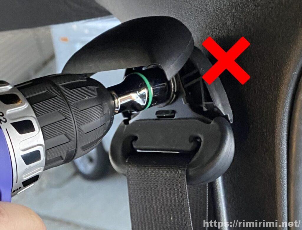 次に、後部座席の壁に付いているシートベルトを取り外します。シートベルトアンカーっていうらしい。