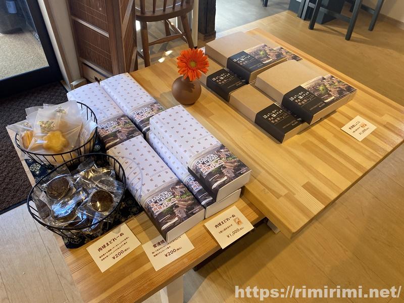 店内には、泣き猫パッケージの「肉球まどれーぬ」と「常滑焼しょこら」が並んでいました。